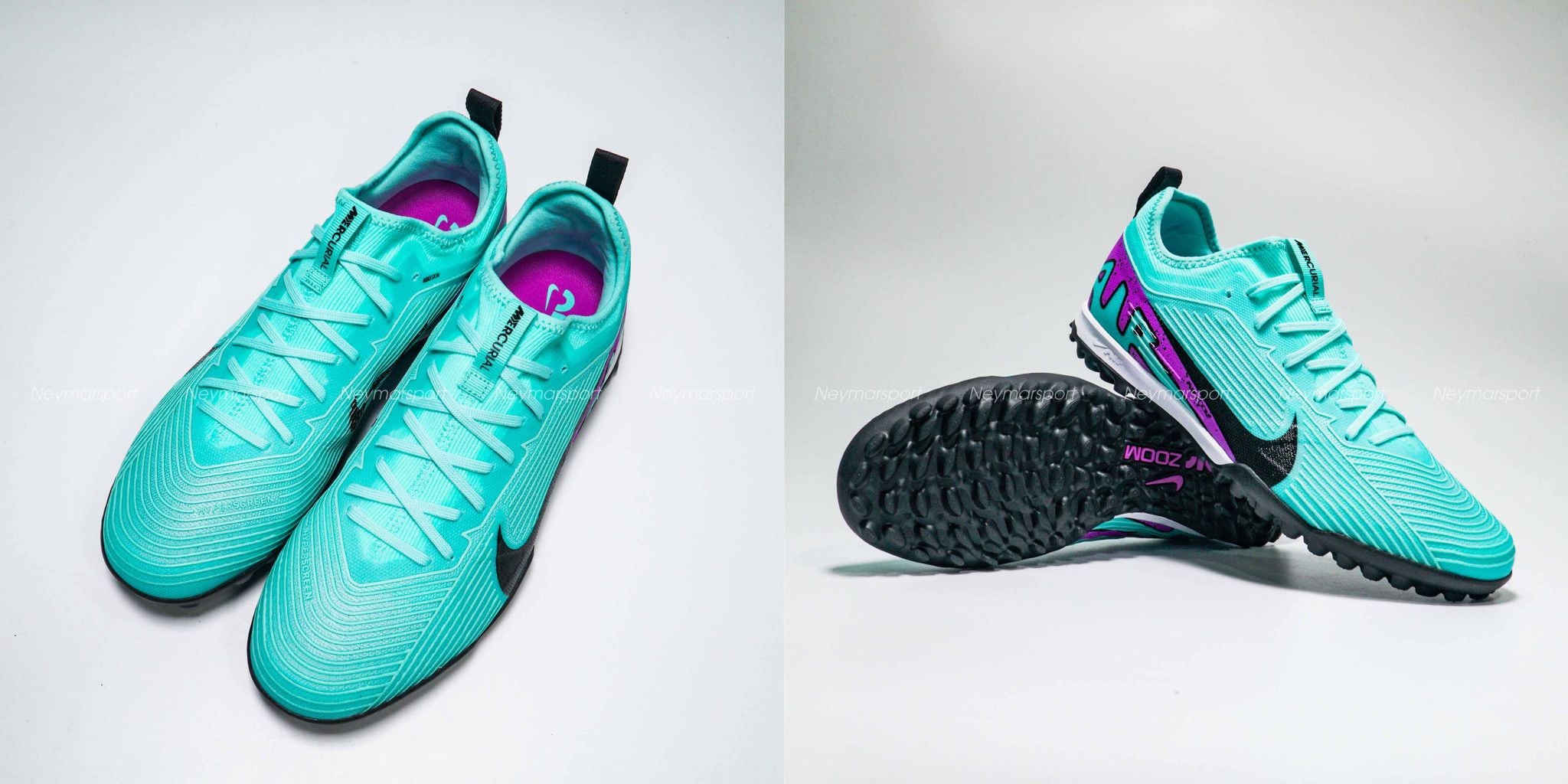 Nike Air Zoom Mercurial Vapor 15 Pro TF Peak Ready - Hyper Turq/Fuchia Dream Black/White là mẫu giày cao cấp dành cho sân cỏ nhân taọ 5-7 người. Nike Air Zoom Mercurial Vapor 15 Pro TF Peak Ready sở hữu gam màu xanh nổi bật kết hợp cùng biểu tượng Swoosh màu đen, các điểm nhấn màu tím trên thân giày và mặt đế làm nổi bật công nghệ Air Zoom, tạo nên vẻ đẹp độc đáo và cuốn hút, khiến cho đôi giày trở thành tâm điểm chú ý trên sân cỏ.